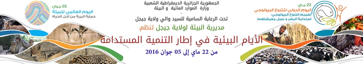 في إطار الطبعة الأولى لأيام البيئة في إطار التنمية المستدامة التي اطلقت من طرف مديرية البيئة لولاية جيجل، تحت إشراف السيد والي ولاية جيجل ابتداءا من يوم 22 ماي إلى غاية 05 جوان 2016، و بمناسبة إحياء اليوم الدولي للتنوع البيولوجي المصادف ايضا ليوم 22 ماي 2016 تحت شعار