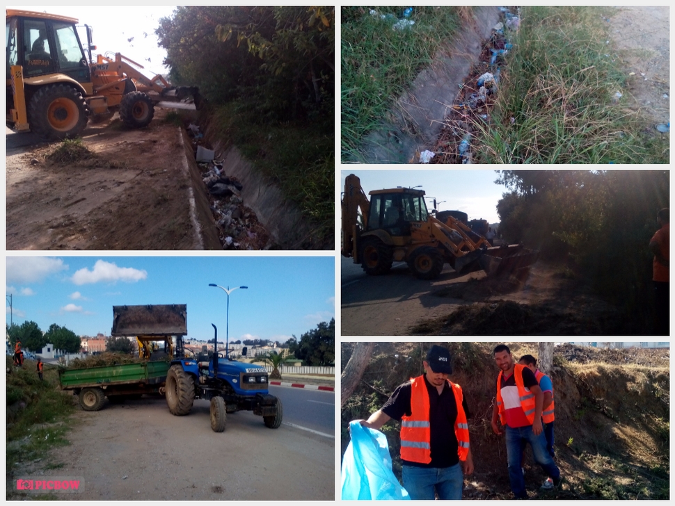 تم تخصيص 5 شاحنات بالاضافة الى جرار لاجراء هاته العملية، حيث تم تنظيف المسالك و المجاري المائية و تقليم الأشجار.