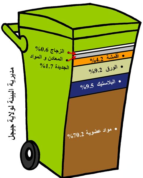 إن مختلف الدراسات المنجزة حول وضعية تسيير النفايات على مستوى الولاية أبرزت أن الكمية المفرزة يوميا قدرت بـ : 486 طن /يوم من النفايات المنزلية تتشكل كما يلي:- مواد عضوية 70.2%